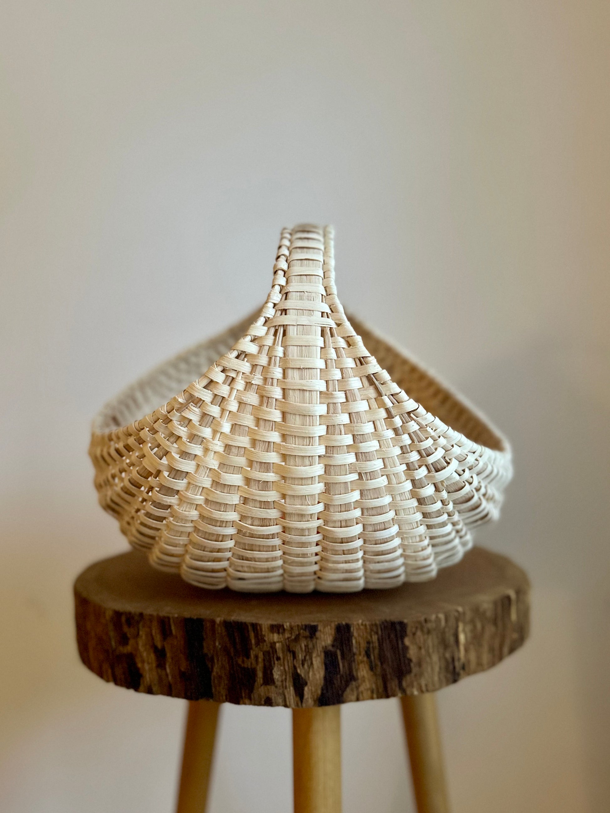 In this three-day course, students will learn the traditional methods of hand-split white oak ribbed basketry in the Appalachian tradition, and will then apply these techniques to a stunning 11” Ginkgo basket. Each student will be provided all tools and materials needed to weave their basket. We will then weave in your hand whittled frame with pre-split white oak weavers. Students will leave the course with an understanding of how to choose and fell a white oak tree for basketry as well as how to split and process a log into workable material. There will be extensive hands-on experience processing white oak splits for frame basketry as well as step-by-step instruction on how to construct a modern Appalachian frame basket. Students will then walk away with a unique, 11” hand carved, 100% white oak basket to remember their time by. This course is suitable for all skill levels, however, does require a good amount of hand strength. Please inquire if you have any concerns.